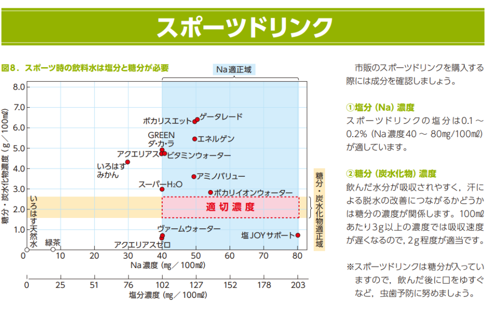 糖を含んだ飲料が推奨される理由としては、腸管での水分吸収を促進するからです。